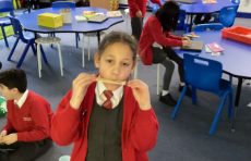 10Our topic this half term is all about sound. We looked at how sound is created through vibrations. To investigate this we created harmonicas with elastics bands. When we blew into the harmonicas we caused the elastic band to vibrate creating sound.