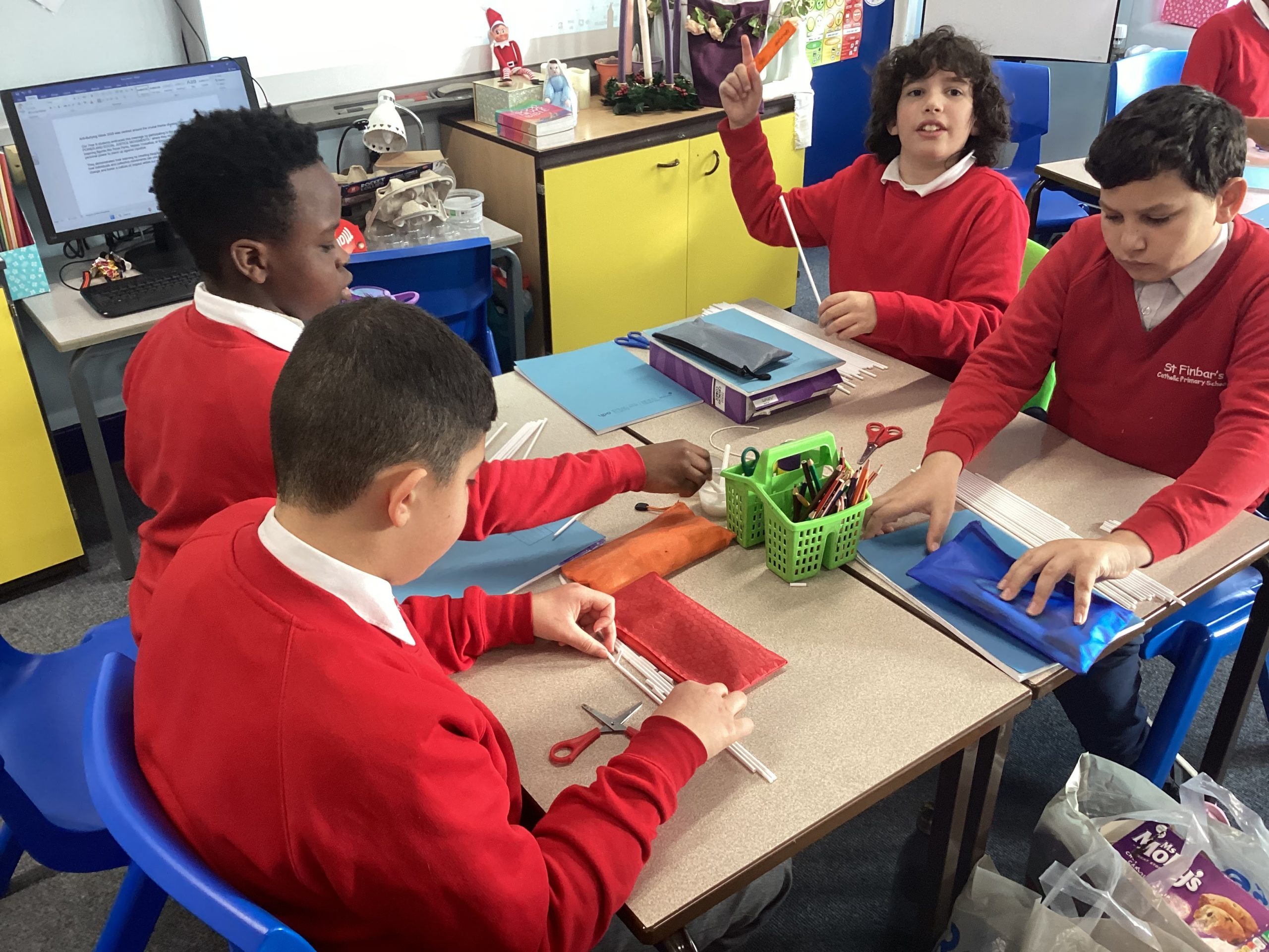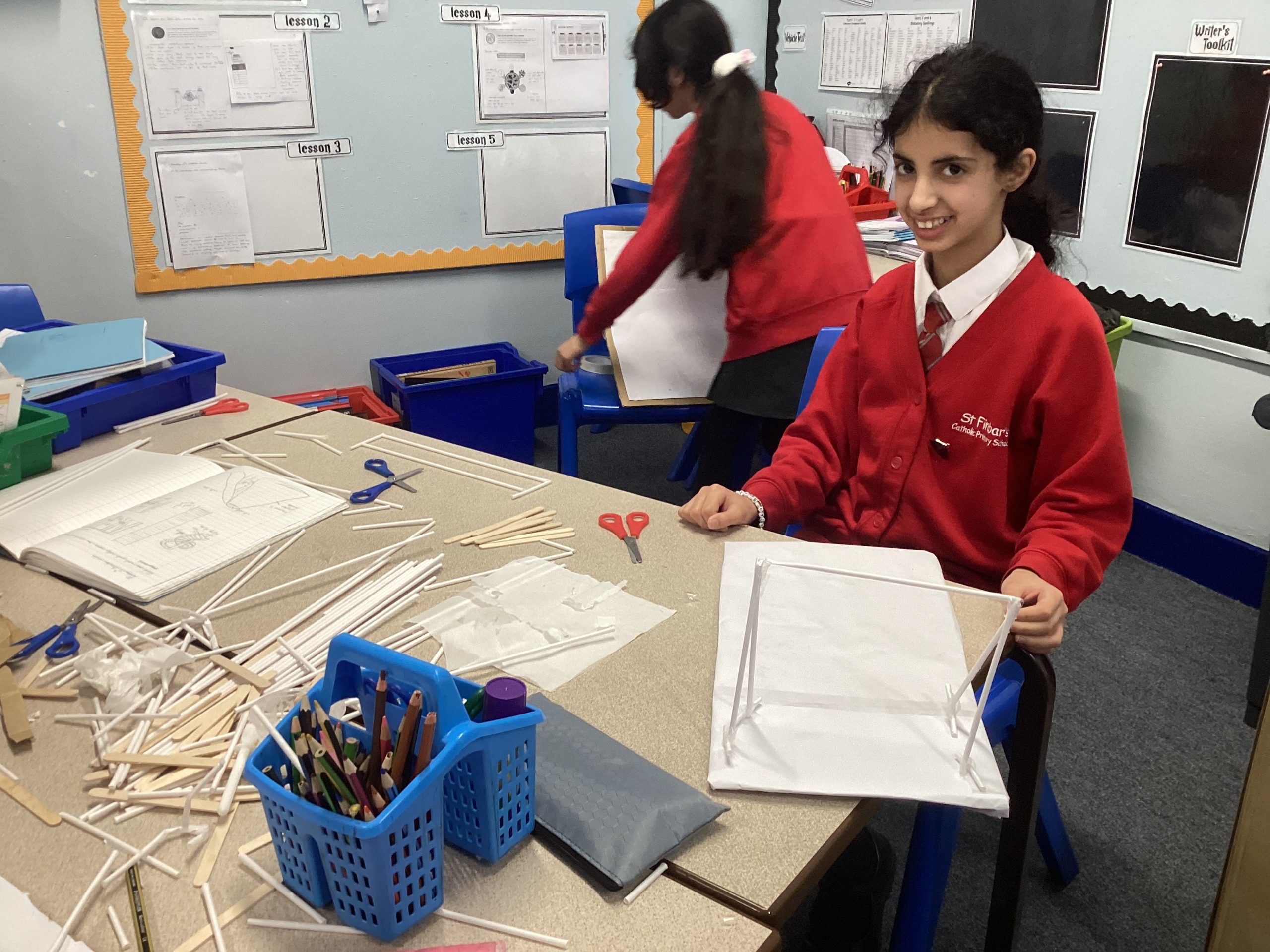 During today’s lesson, we have been working on perfecting our builds. We looked at a range of methods to help our scriptures stand independently. They are starting to look good. One more lesson and they will be complete.
