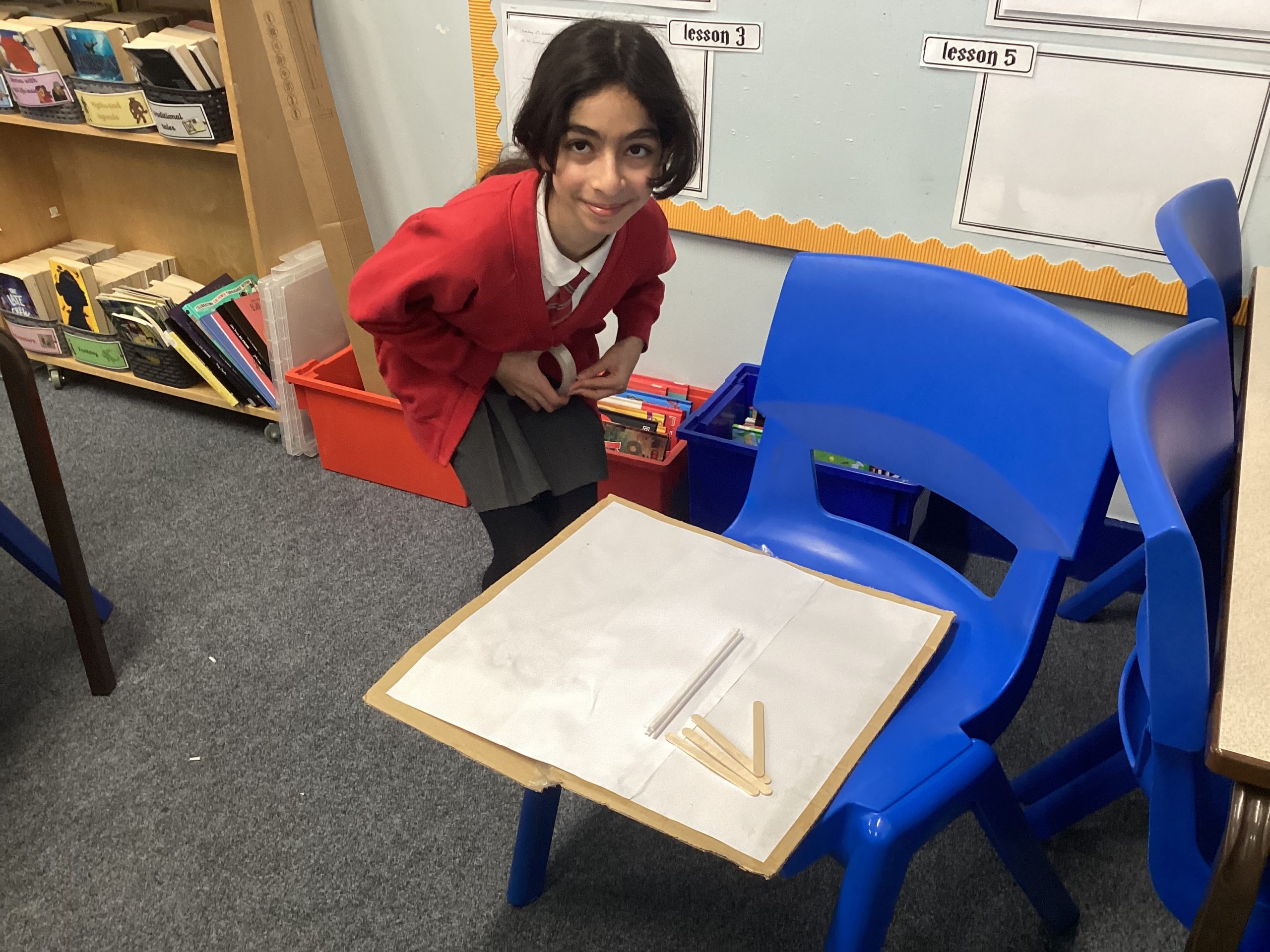 Our DT project, this half term has been to create a playground using different methods to create structures. Today we began our playground. At the start of the lesson we thought it was going to be very simple however that was not the case. We had to problem solve to get our structures to stand independent.